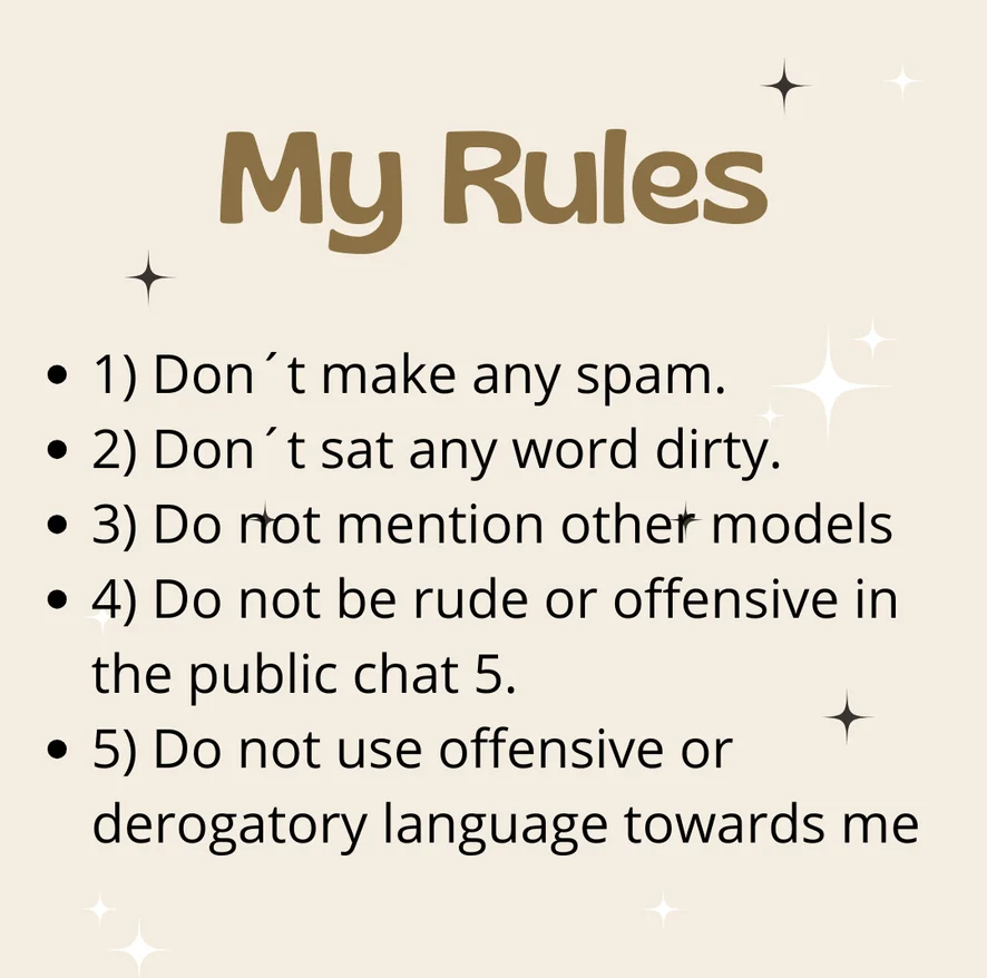 Na pieska, Ahegao, Taniec erotyczny, Camel toe, Gorset, Cosplay, Striptiz, Palenie, Pokaz w oliwie, Twerking, Kochanki, Fetysz stóp, Robienie loda, Tittyfuck, Klapsy, Wytrysk, Palcówka, Oralne pieszczenie odbytu, Podwójna penetracja, Rozwarcie, Głębokie gardło, Glory hole, Zabawki, Masturbacja, Orgazm, Hardkor, Kobiecy wytrysk, Szpilki, Anal, Dildo lub wibrator, Sprośne słówka, Fisting